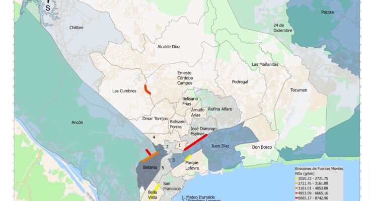 Los corregimientos de Betania, Juan Díaz, Río Abajo y Ancón registraron las emisiones más altas de contaminantes atmosféricos, específicamente los óxidos de nitrógeno (NOx) y los materiales particulados (PMx), de acuerdo con los resultados del inventario de emisiones de contaminantes atmosféricos, producto de las fuentes móviles, fijas y de área, para la ciudad de Panamá, estudio realizado por el equipo de investigación de la Universidad Tecnológica de Panamá (UTP), encabezado por la investigadora científica Franchesca González Olivardía.